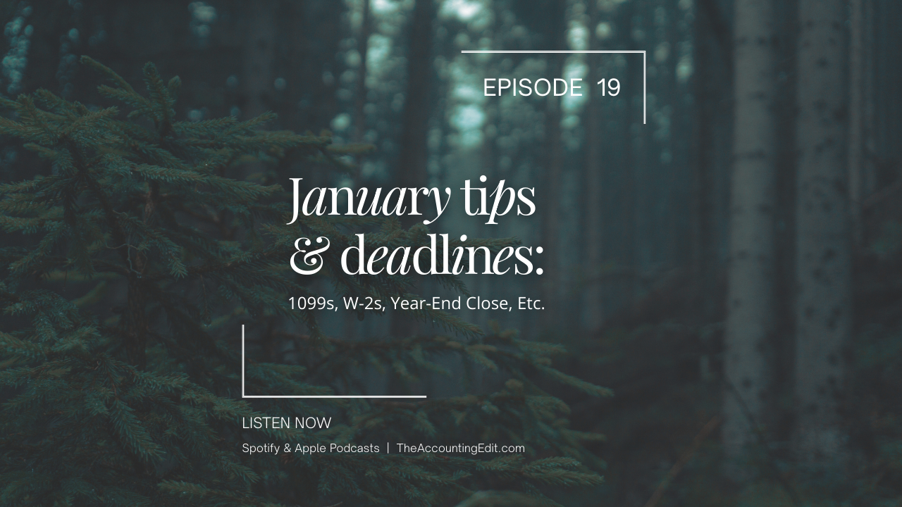 🎙 Listen to Episode 19: January Tips and Deadlines 1099s W2s Year End Close and More